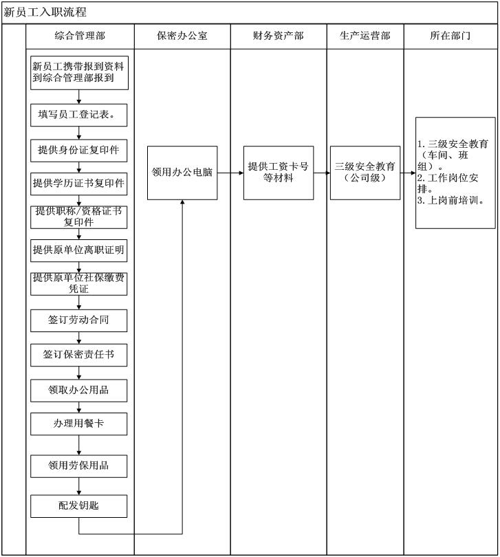 2.按照《新員工入職流程》逐項辦理入職手續。